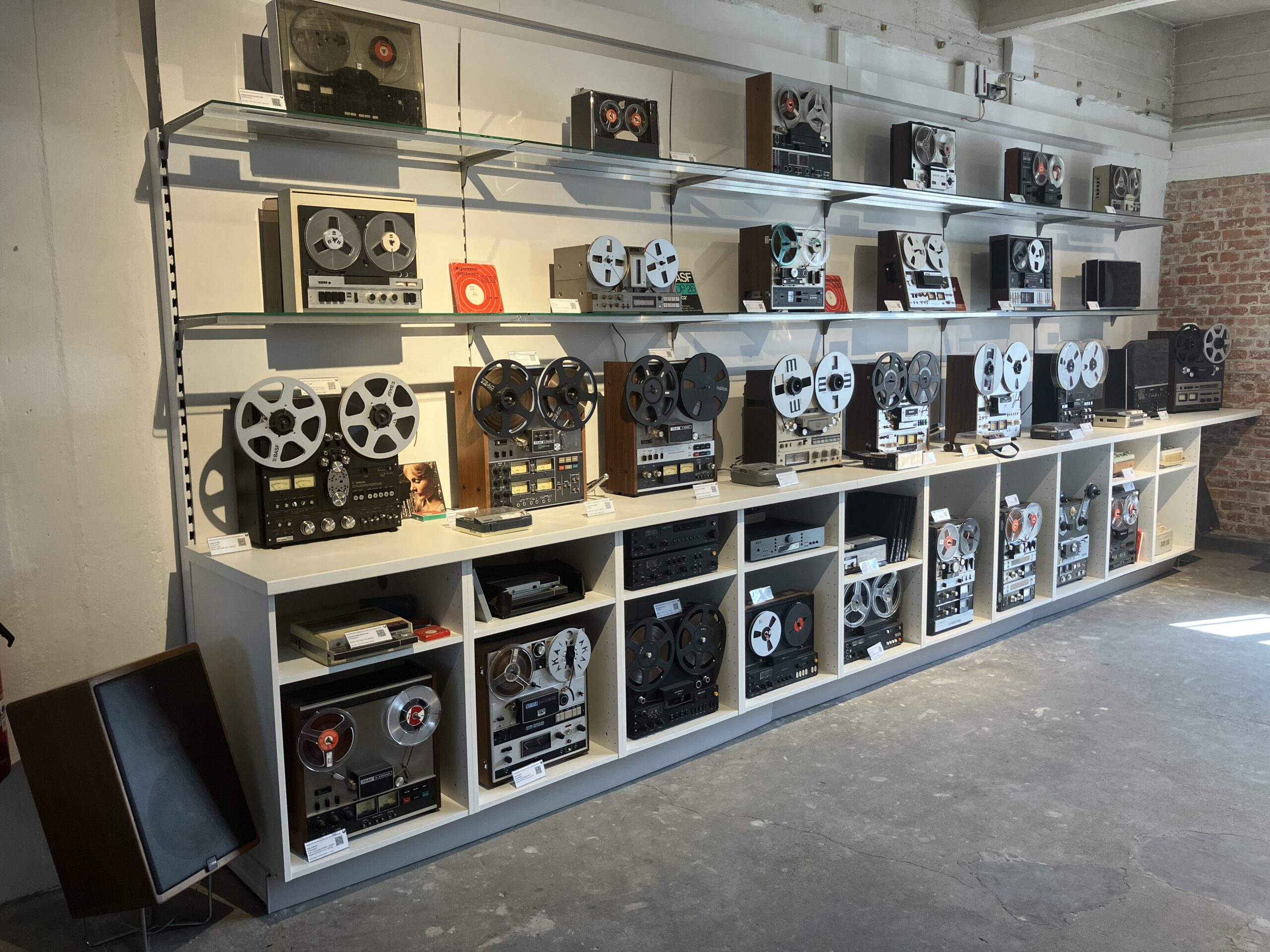 Im Raum Studiotechnik werden professionelle Audiogeräte ausgestellt. Das Spektrum reicht vom Studioplattenspieler über Audiomischpulte bis zum 24 Spur Tonbandgerät.